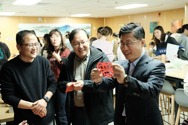 游戏环节由本科学生会与研究生会精心策划,包含多项趣味活动。撰写新年祝福、传统投壶竞技、巧手编中国结、创意剪窗花、活力歌曲接力、现场绘画创作、默契合作写字、喜庆贴福字……丰富多彩的游戏吸引了同学们踊跃参与,现场欢呼声、笑声此起彼伏,热闹非凡。
