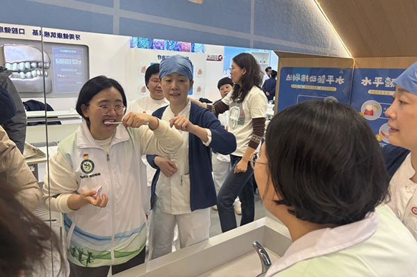 健康科普环节,刘敏围绕“口腔健康与全身健康”,生动讲解了口腔疾病预防及护理保健等知识;朝阳区疾控中心(北京市朝阳区卫生健康监督所)第一党支部支委杨秋带领大家互动学习手指操,传递主动健康理念。