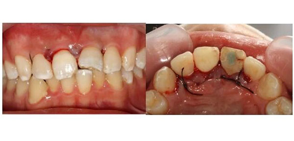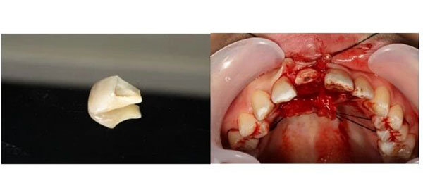 最后,口腔急诊医生选择了一条更有挑战的路——在牙周翻瓣手术下,把折断的牙齿“接”回去: